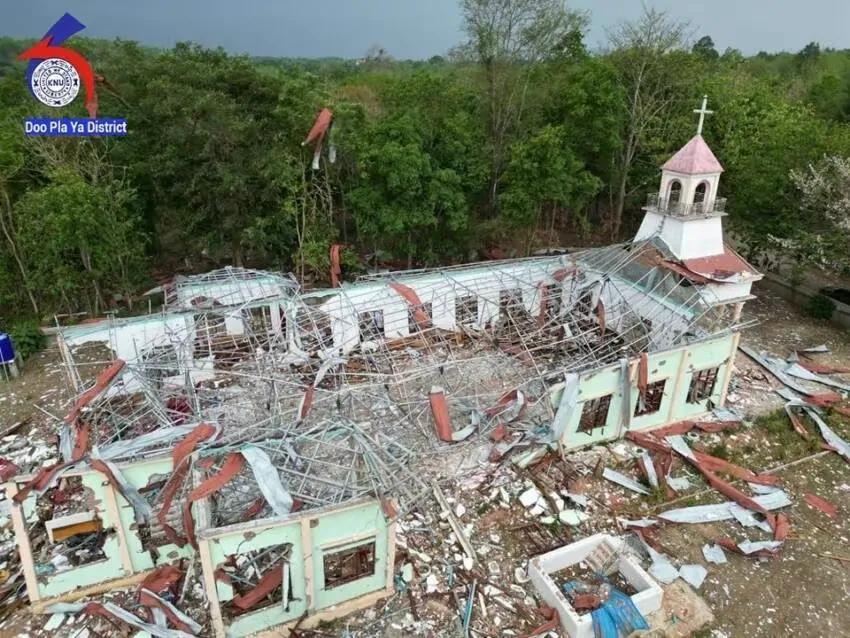 而作为政府军的对手克伦民族解放军仅仅有 10余人的伤亡,缅甸政府军打不过就开始用战斗机进行无差别轰炸,只要是有嫌疑的建筑通通进行投弹轰炸处理,不管是学校还是教堂无一幸免,全部被炸弹炸成废墟!