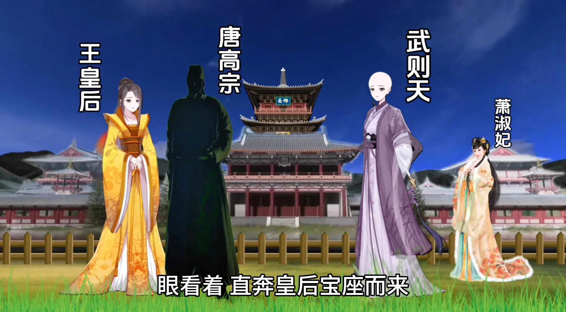 公元655年,在武媚的运作下,王皇后和萧淑妃双双卷入谋行鸩毒、魇胜,巫蛊之术诅咒谋害武媚的案子,高宗下诏废王立武,将王皇后和萧淑妃贬为庶人,囚禁宫中,其族人流放岭南,另册封武媚为皇后。