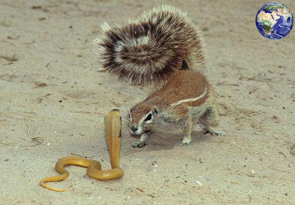 南非地松鼠还擅长捕捉令多数动物闻风丧胆的眼镜蛇。
