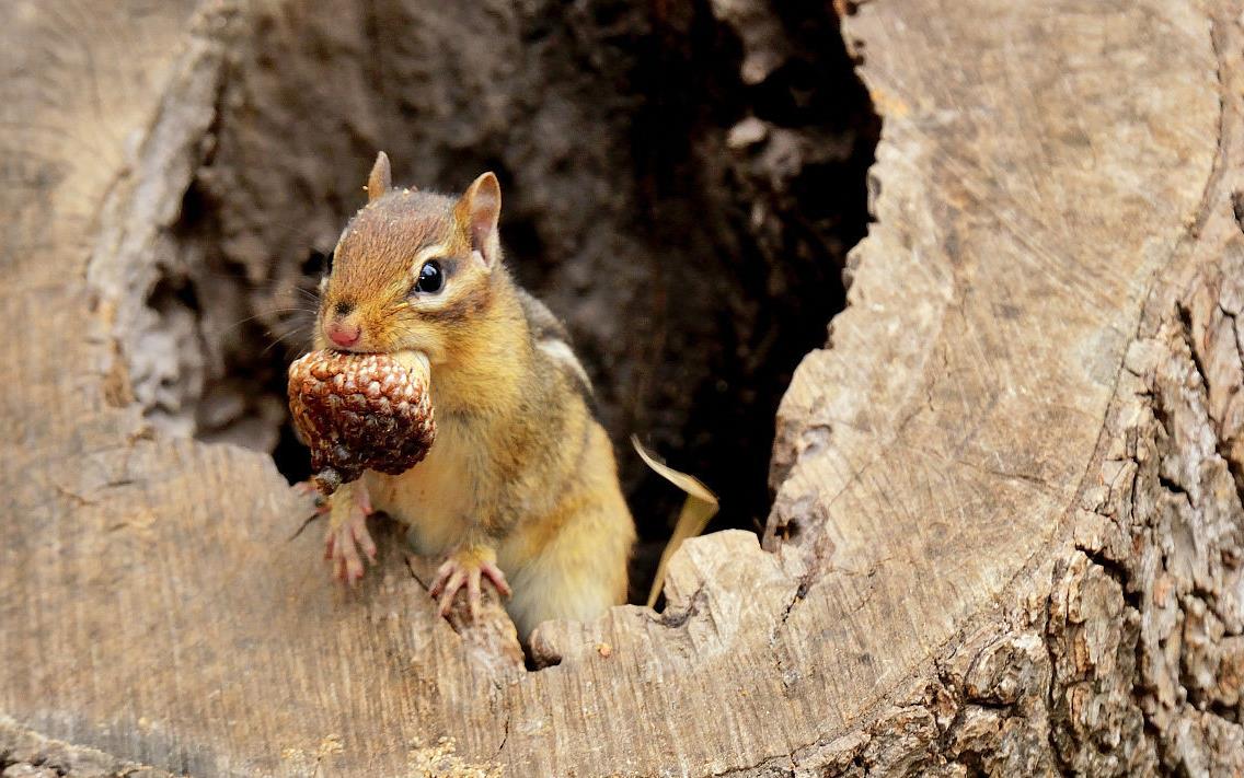以各类生坚果、浆果、豆类、农作物、鸟卵、昆虫等为食。有春天发情秋天贮藏食物和冬眠的习性。