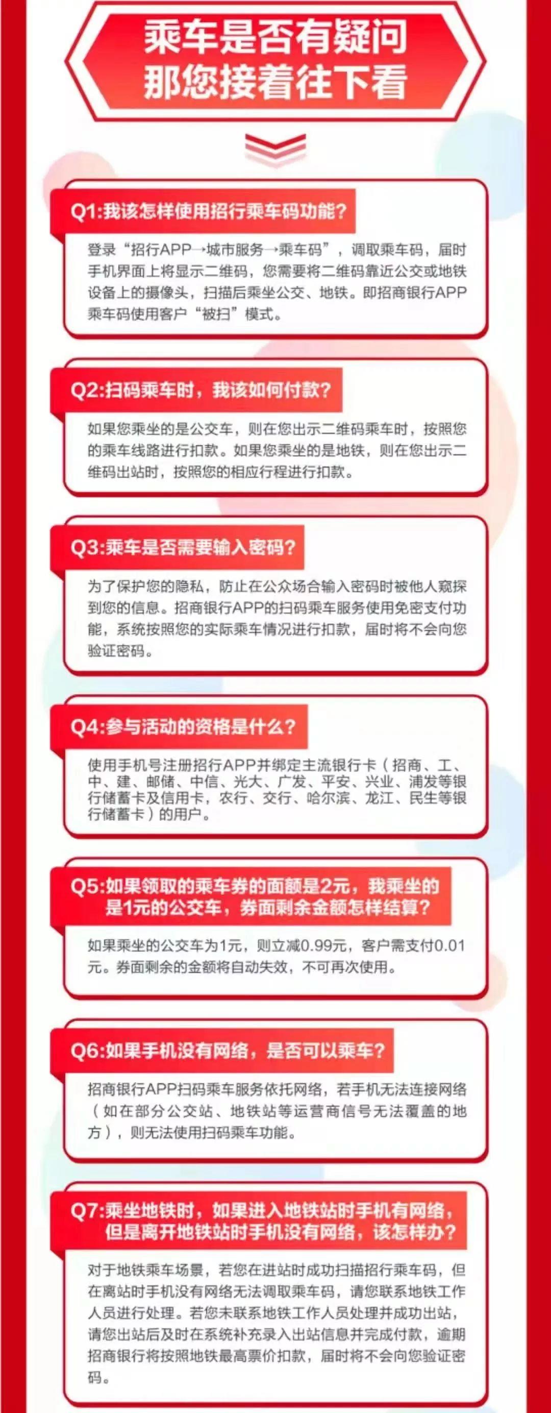 使用招商银行手机APP并绑定相关银行银行卡的用户,在领取乘车优惠券后,使用乘车二维码付费可享受最低一分钱的专属乘车优惠。