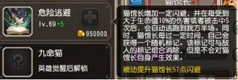 小技能危险逃避,被动增加猫馆长闪避,受到一定值伤害以或者被打到5次逃回我方半场,对于这个技能,老遥只想说,我从未见过如此厚颜无耻的逃命技,事实上高闪避的猫馆长哪怕不逃都很难被物理攻击打中,这一跳更是智能让输出英雄目瞪狗带,触发逃避之后依旧是3秒钟无敌时间,然后在我方阵中位置出现。