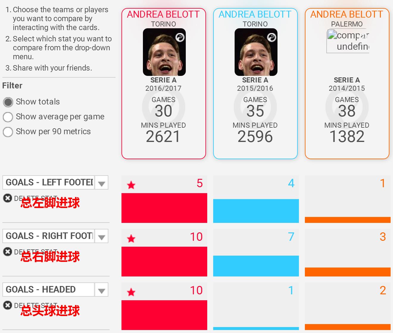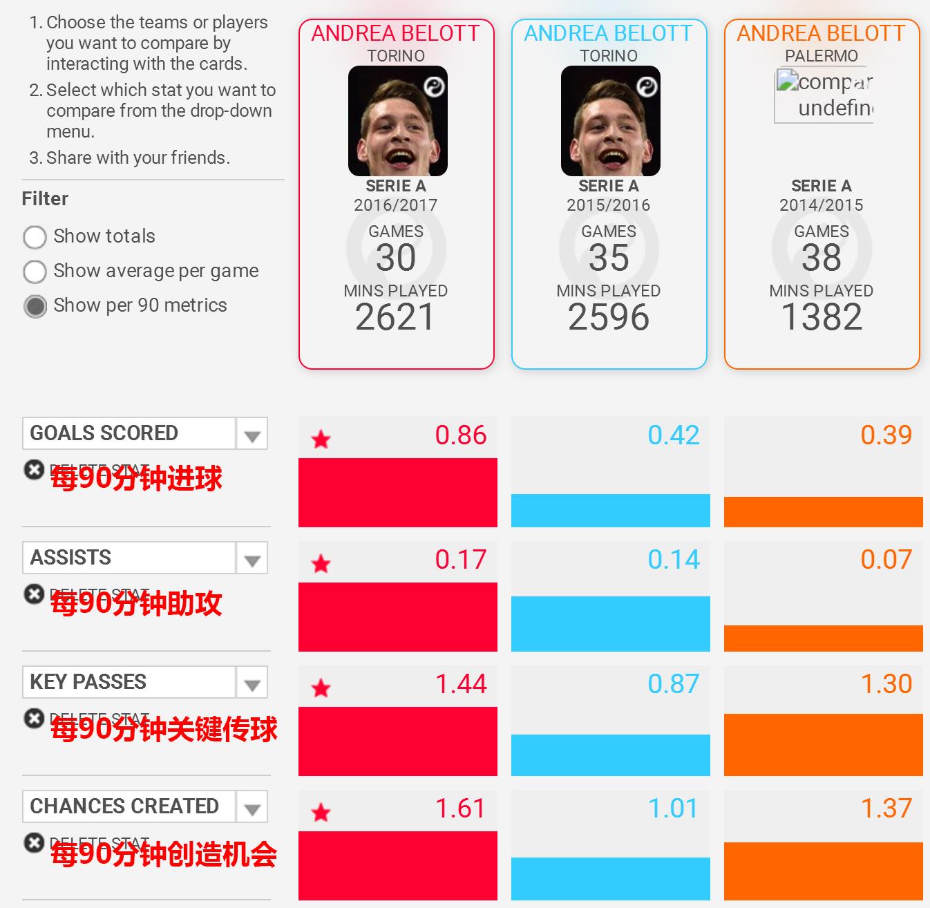下图是贝洛蒂近三年在意甲联赛的数据,可以看到他一直在持续不断的进步。