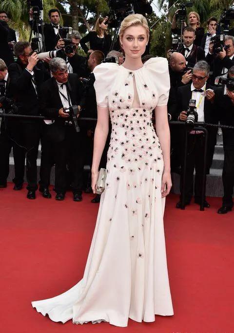 以一袭Giambattista Valli白色及地礼服出席68届戛纳影展,肩部及胸口的褶皱设计典雅又现代,细腻的粉花刺绣点缀演绎浪漫氛围,尊贵唯美之感跃然眼前。