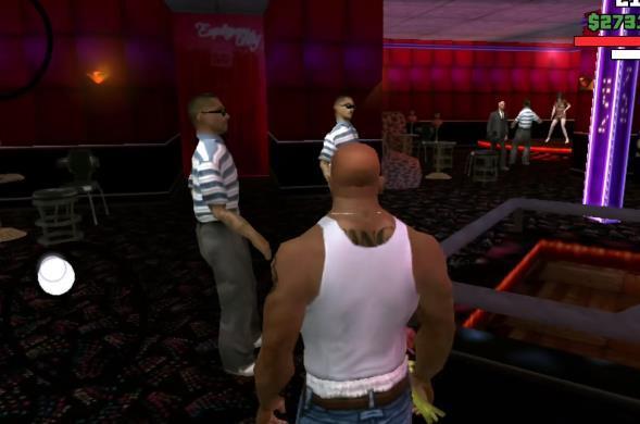 GTASA中的俱乐部,这里的NPC相对来说就很少了,但是工作人员挺多的,里面有很多漂亮的NPC,我们可以喝点酒水,也可以绕一圈走人,这款游戏中的主角身材可是能随意变化的,我们需要吃食物、健身来控制自己的身材,当然也可以让CJ成为一个肥胖的大汉,当年有不少玩家这样恶搞过。