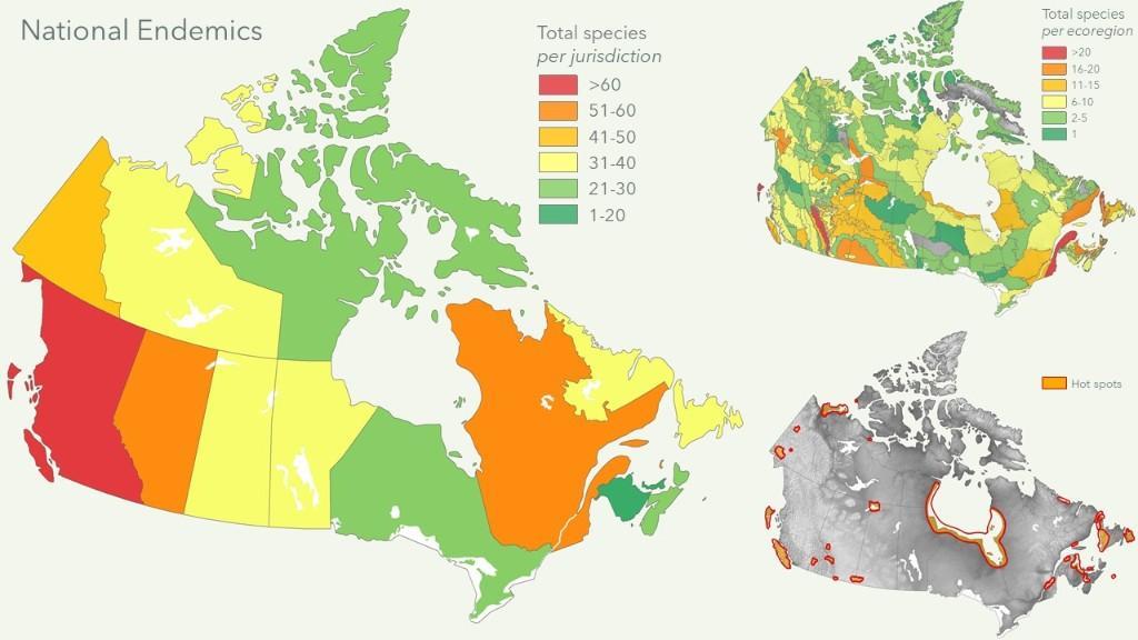 该报告经过两年的努力,不仅提供了加拿大特有物种的最新清单(加拿大独特的动植物品种),而且还展示了这些物种分布。克劳斯博士说,该报告可以帮助决策者了解哪些野生动植物地区应优先考虑保护,包括那些容易受到气候变化影响的地区。