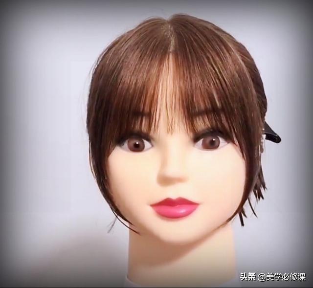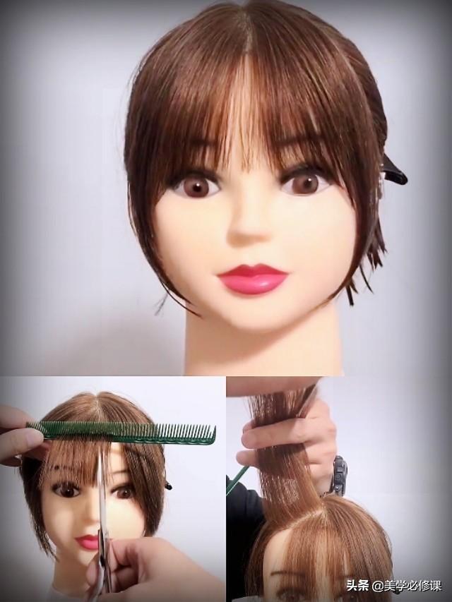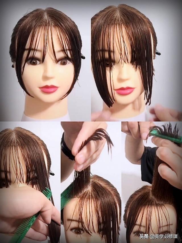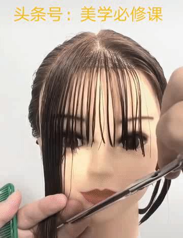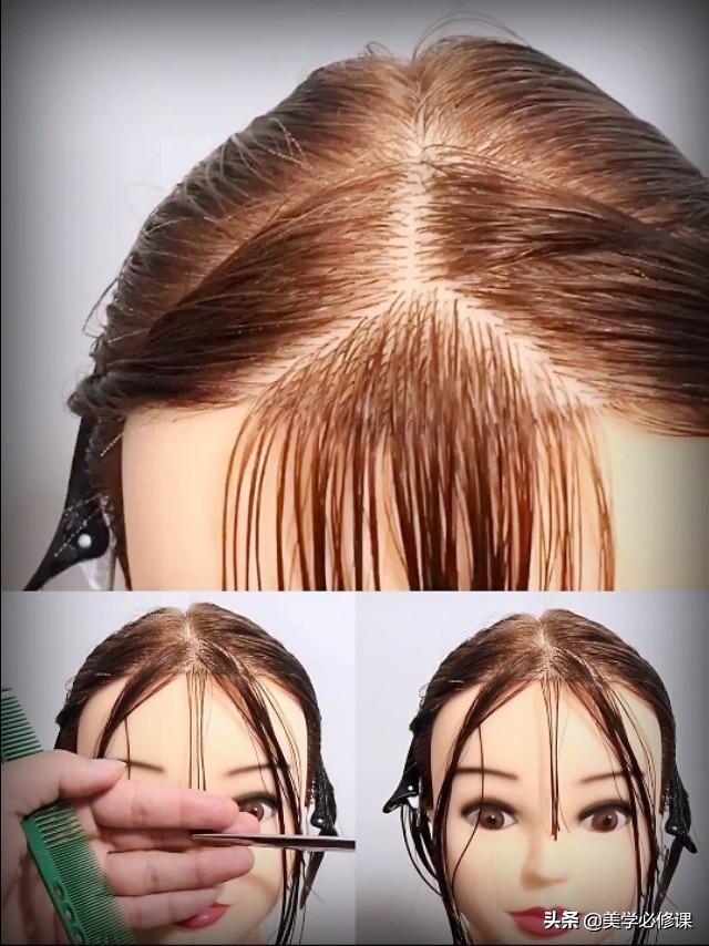 中间圆弧空气刘海,再加两侧八字刘海,详细修剪步骤分享