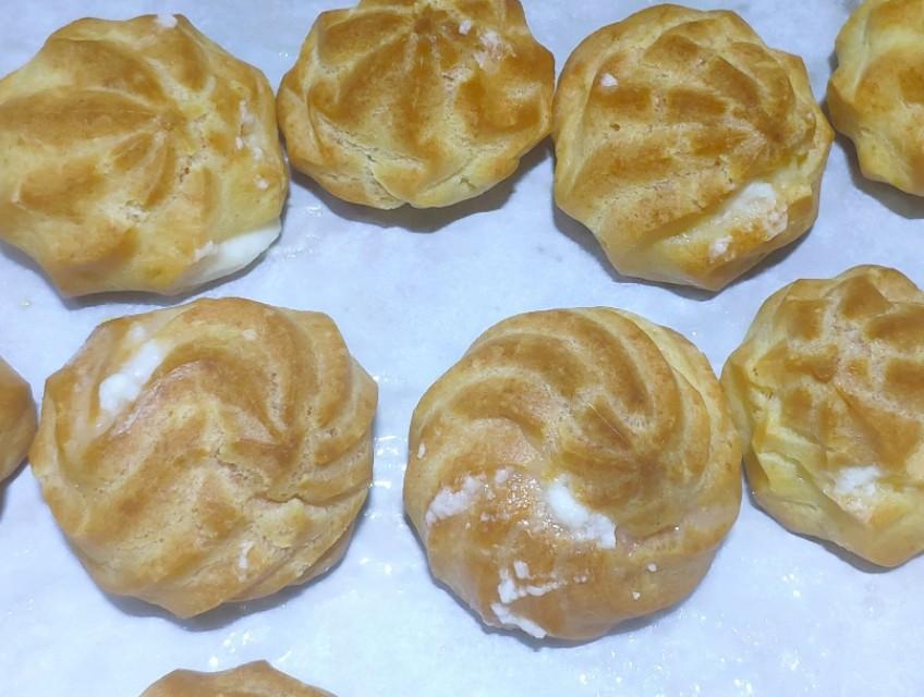 昨天制作了奶油泡芙,其实里面的奶油是打发过头的,挤的时候都是豆腐渣状态,挤进泡芙皮里面都往外渗水,现场惨不忍睹。图片里面也能看出奶油是豆腐渣的状态。