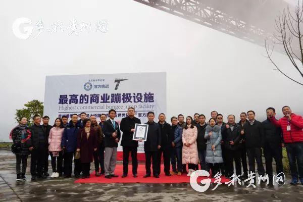 近日,在吉尼斯世界纪录认证官皮特的认证下,贵州黄果树坝陵河大桥蹦极吉尼斯世界纪录认证成功,成为了世界最高的商业蹦极设施。