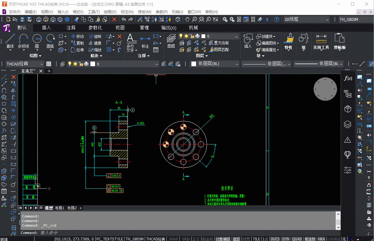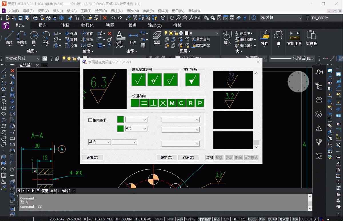 在机械设计过程中,需要对粗糙度进行标注,这时候就需要用到粗糙度标注的功能。让我看一下在THCAD V23中如何实现吧。