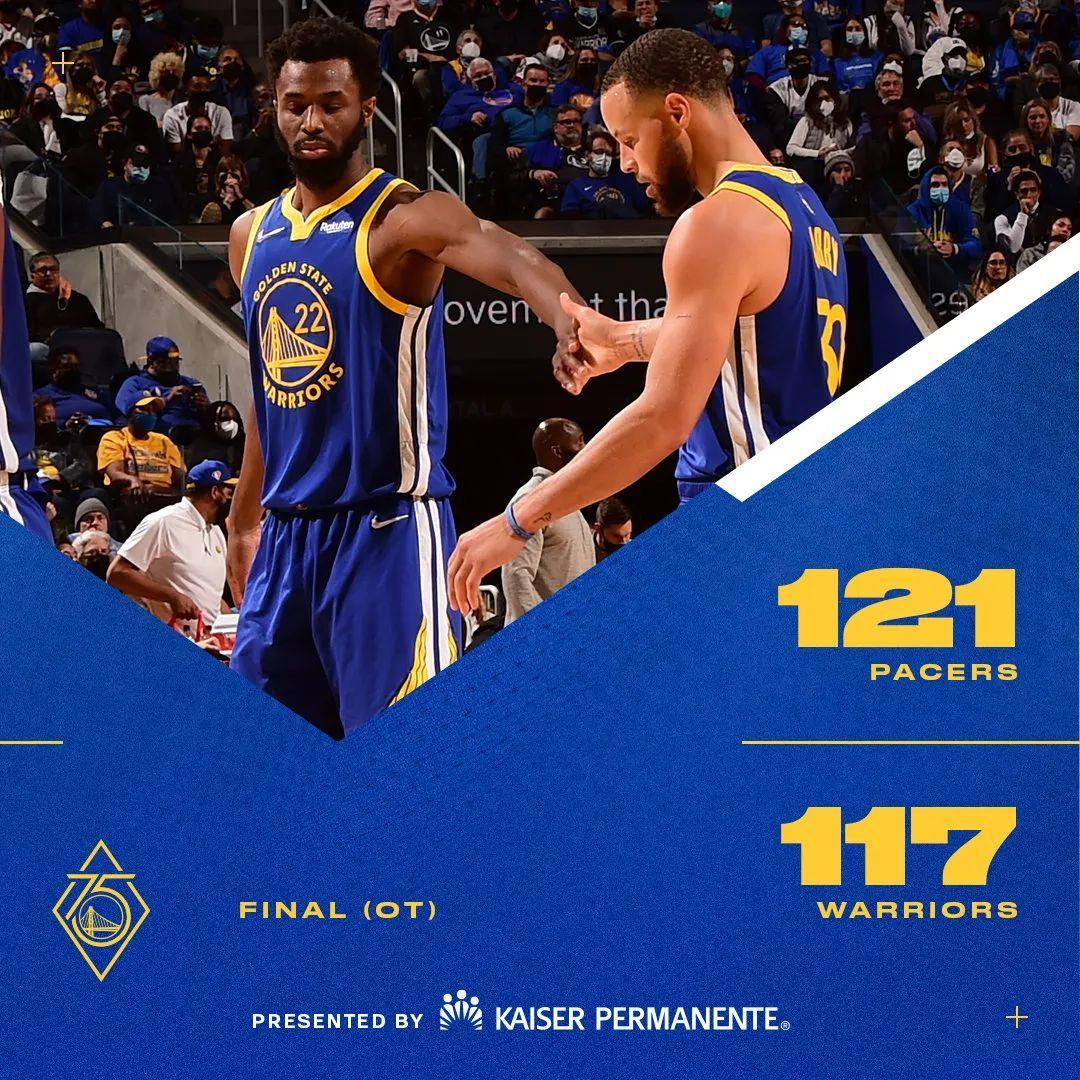杜阿尔特27+7 库里39+8 残阵步行者7人上双 加时险胜勇士