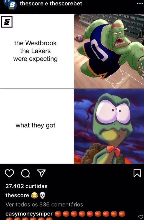 美媒晒图挖苦湖人交易来威少 KD扔番茄挺威少