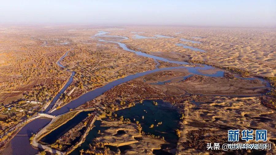 ▲塔里木河两岸的天然胡杨林(无人机拍摄) 。图片来源 新华网