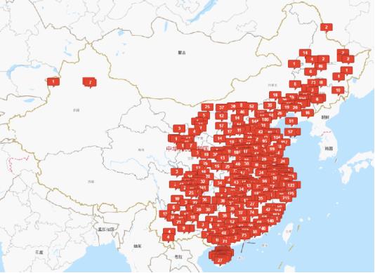 查看地图,能看到最直观的数据。别看华莱士的分布比麦当劳和肯德基的窄,当你放大之后你却能看到华莱士在许多非一线城市的数量都大超前两者。