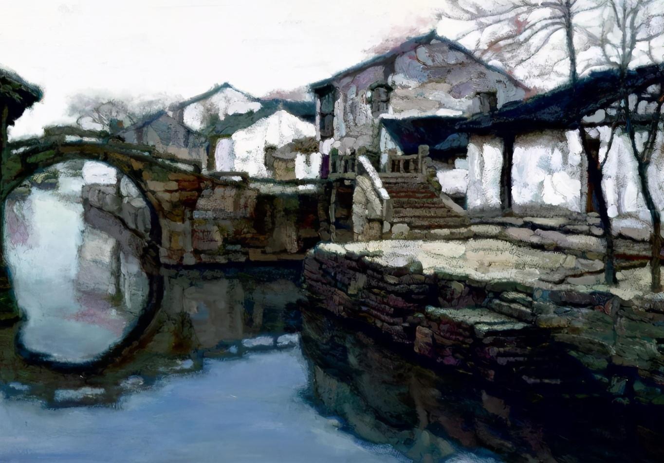 正是好友的这个建议,陈逸飞的心里打开了另外的一扇窗,创作之路上也打开了一扇门。陈逸飞拿起画笔,在画布上比对着照片,勾勒出了一幅周庄水乡的油画。或许这正是他真正追求的艺术,也是他向往的绘画作品。