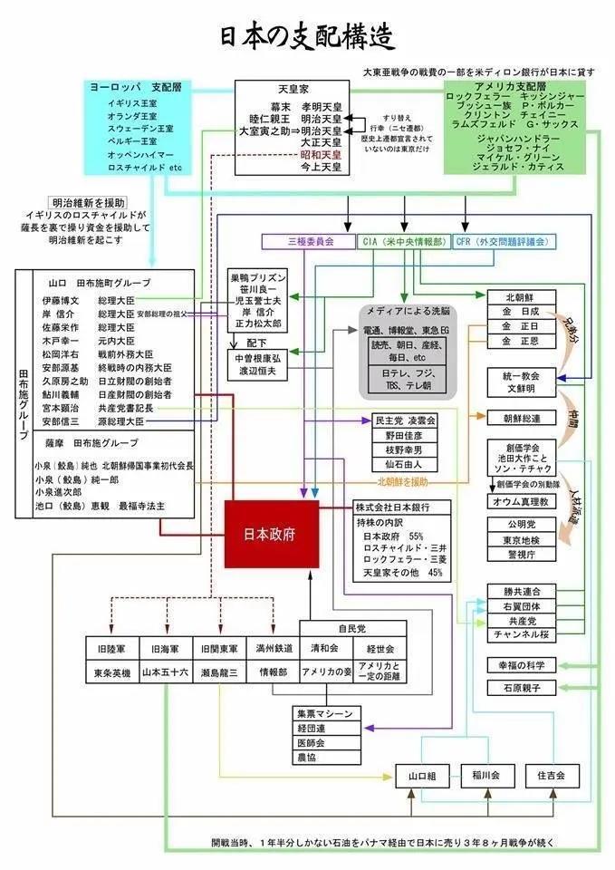 从下图上可以看出,担任过日本首相的佐藤荣作、麻生太郎、安倍晋三等人,都和皇室之间有着错综复杂的关系。鉴于这种状况,有些日本学者夸张的指出,现在的日本政府其实还是由天皇家族在幕后进行操纵。