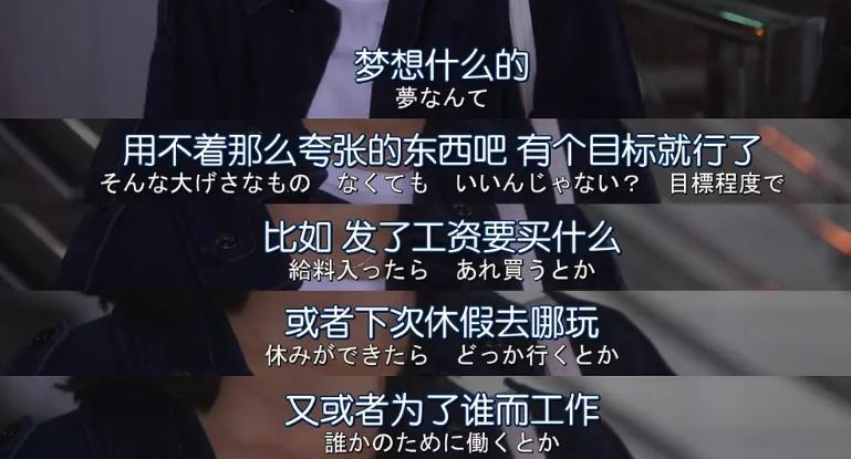 三澄直言工作就是为了生活。六郎说自己还没找到梦想。他和我们大部分人一样,没有找到支撑自己一直走下去的梦想,也没有把梦想变成了工作。