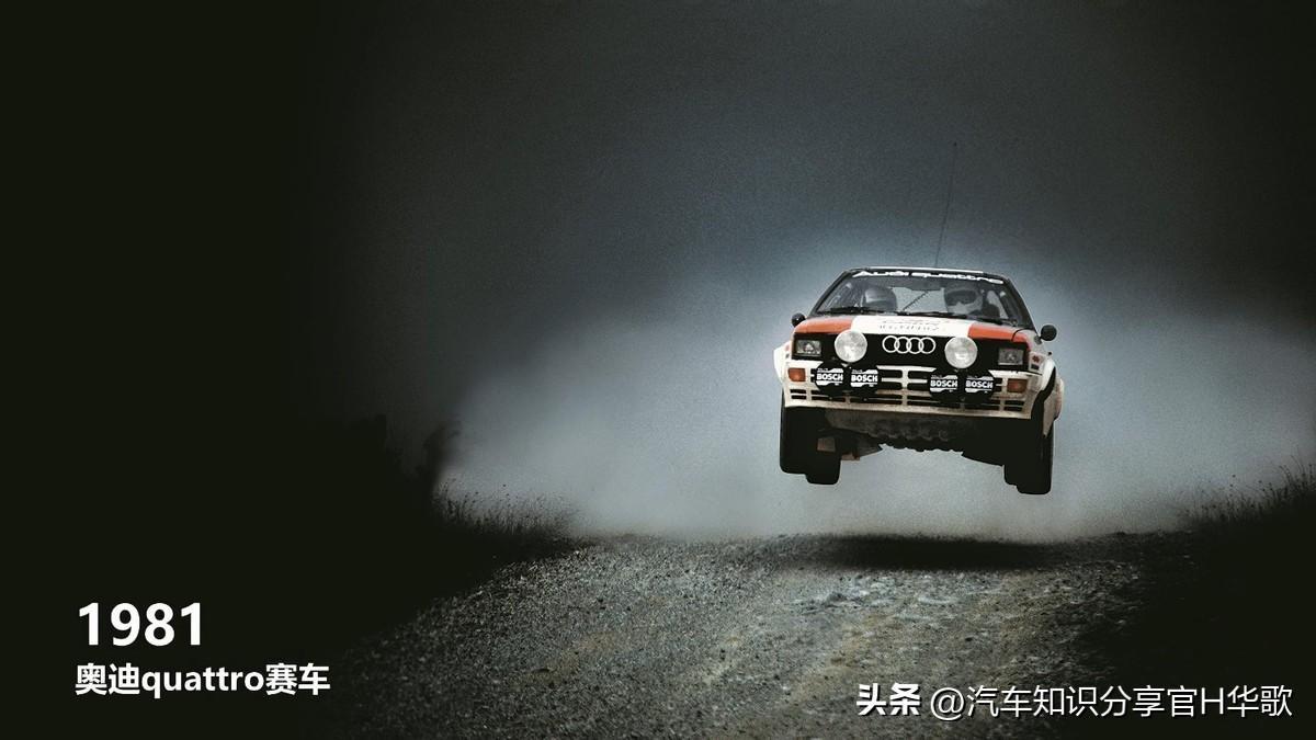 它有多强大呢?,当年的奥迪Quattro四驱系统强到变态,四驱的奥迪在赛场上驰骋,第一辆搭载Quattro的奥迪赛车在WRC的B组中拿下了23胜,在1982和1984年总积分榜排名第一。