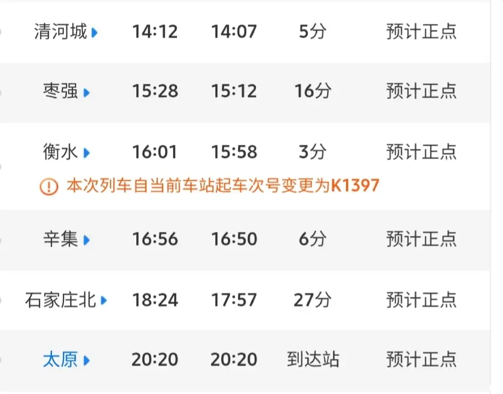 话再说回来,K1396次列车,全程运行29小时30分钟,于第二天晚上20:20,正点到达终点站太原站。