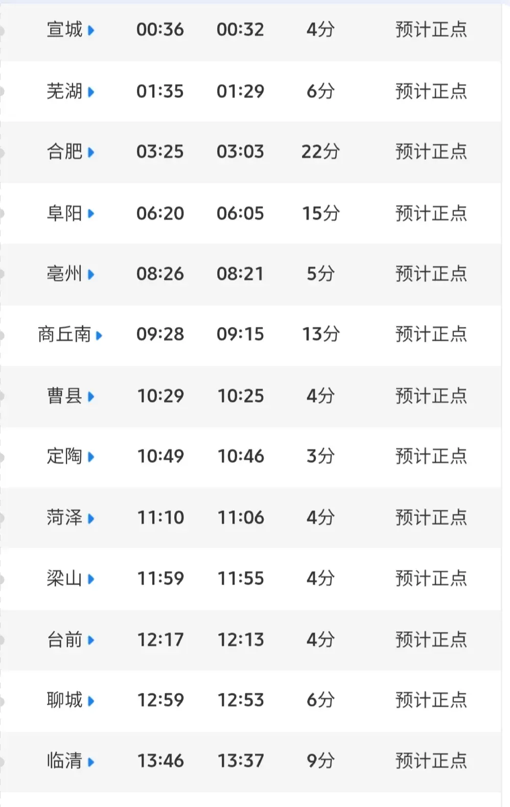 不过,凡事都有特殊情况,K1396次列车,在金华、杭州、合肥、阜阳、商丘、石家庄这6座车站经停时间,都超过13分钟的时间。