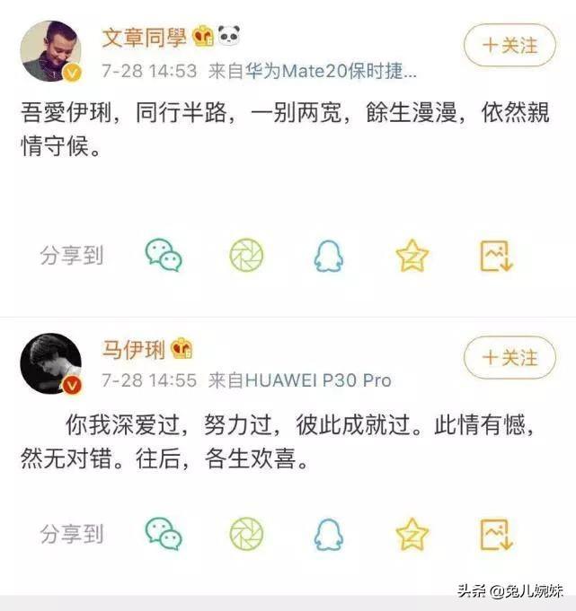 马伊琍、文章正式离婚:好好说再见,才能不负遇见