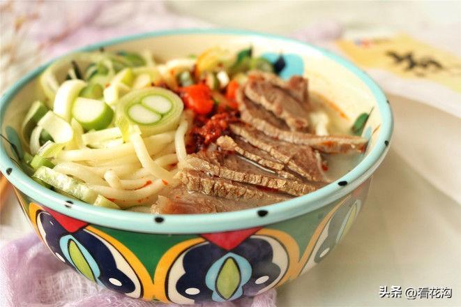 31.上蔡县的美食小吃-饸饹面。上蔡县的一种面食。把精面和成面团,搓成10厘米长的圆条投入饸饹床筛孔,将面压入开水锅内,煮熟后捞出,过清凉水,再拌点食油备用。用热油把酱炒出香味,放入葱、蒜、姜稍炒一下,再下肉丁炒熟备用(俗称“臊子”)。把炒好的臊子装入锅内,用文火慢慢煮透。猪肉汤放点黑酱上色,汤开后,少放点韭菜或菠菜,把压好的团捞到笊篱里,在锅内稍带点汤盛入碗内,浇两勺臊子,再少放点醋即时食用。