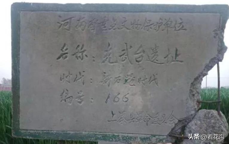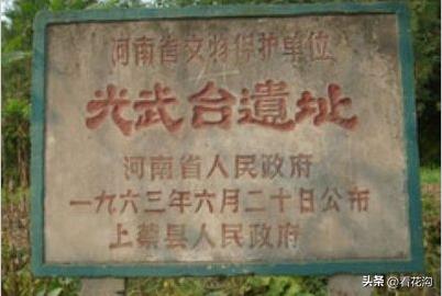15.上蔡县的文物古迹-光武台遗址。位于上蔡县城东北35公里的东岸乡杨庄村,海拔高度为59米。光武台遗址为一长方体土台,南北长70.3米,东西宽52.2米,总面积为3669.66平方米,高5.5米。遗址文化层较厚,第二层为被战火或其他原因火烧后的东汉粮食遗址,第三层为夯土层,第四层应为居住遗址,有陶器残片和石器及红烧土层。纹饰以条纹、绳纹居多,并裹有方格纹、阴弦纹、附加堆纹、指甲纹;石器有石锛及石镰等生产劳动工具等,均为打制后又磨制而成。
