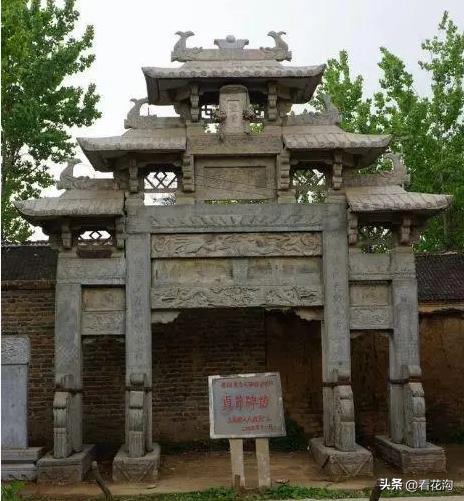 22.上蔡县的名胜古迹-苏氏节孝坊。建于清嘉庆十二年(1807年),位于上蔡县城东北30公里的东岸乡牌坊刘村,北临小商河,东距东岸村委约5公里。整个牌坊由青石雕成构件,额坊上雕刻有丹凤朝阳的浮雕,下方雕刻为楷书“旌表处士刘自然之妻苏氏节孝”文字,下面花板雕刻“二龙戏珠”浮雕。东石柱上联:“妇德代夫功孝逾金石”,西石柱下联“母仪为父教节凛冰霜”。东西侧对称分别雕有麒麟、鹿、神兽等浮雕。两外侧边柱上各为一阴刻人物,头戴官帽,手持朝笏,身着蟒袍,为福禄二星。石柱上侧构件为莲花图案。