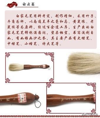 28.上蔡县的地方特产-白云翁毛笔。民国时期,在豫南乃至苏皖、湖广,文人视书案上的“小大由之”相来如珍,“白云翁”这个名子在黉学蒙馆几乎成了毛笔的金字招牌。白家毛笔自明朝到白山林先生,迄今已传十八代。现年73岁的白山林先生的父亲白云翁(白山林父亲的号)在清末民国名满天下。“白云翁”毛笔约有80个系列,分羊毫、狼毫、鼠须、貂毛、香锂、马毛等。其中,尤以羊毫、狼毫混合者为上品。笔头园润、饱满、坚挺而富弹性。从原料到成品须经浸、落、梳、拔、整、配锋等百余道工序。