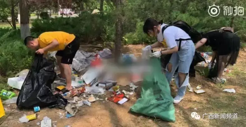 环保?作秀?女子公园捡垃圾被指“摆拍”