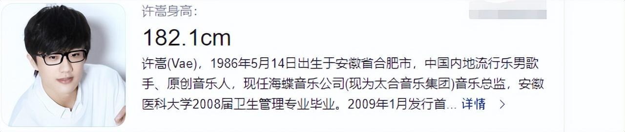 36岁音乐才子许嵩(Vae)医学生毕业,但曾演唱了无数经典流行歌曲,像是《玫瑰花的葬礼》《有何不可》《灰色头像》《断桥残雪》《雅俗共赏》等,伴随了一代人的青春成长回忆,与汪苏泷、徐良并称“QQ三大音乐巨头”。如今的他,担任海蝶公司(太合)音乐总监!