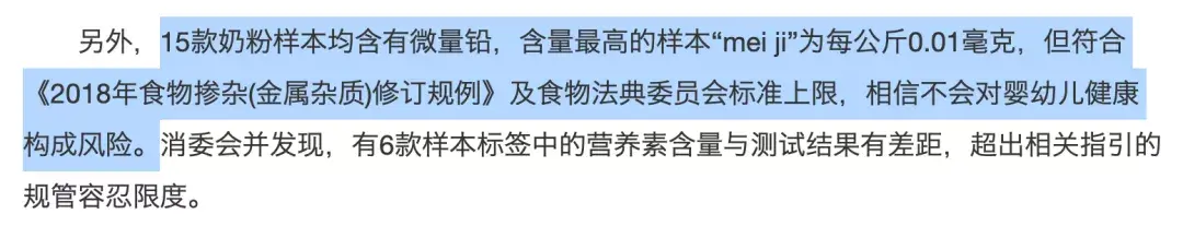 虽然铅中毒很吓人,但15款奶粉检测出的铅含量都符合相关标准。