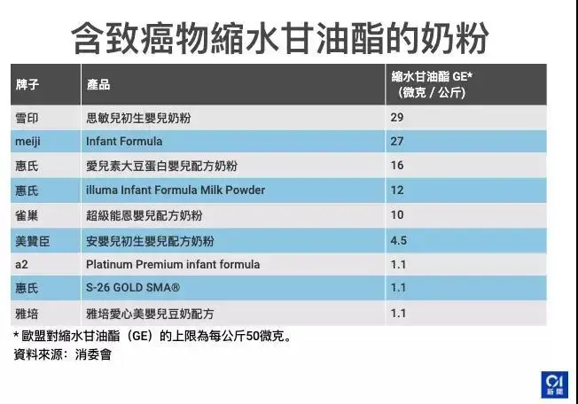 这次香港消委会检测的15款样品当中,有9款奶粉含具有基因毒性及致癌性的缩水甘油脂。