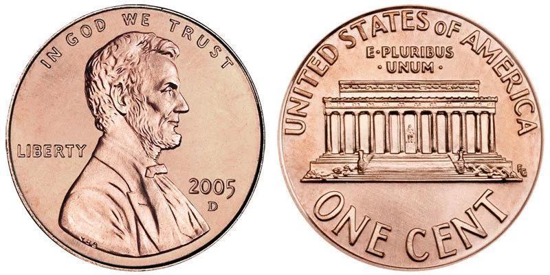 1美分又称 penny,常见正面头像是美国第16任林肯总统。林肯是第一位共和党总统,美国南北战争后,林肯废除了黑人奴隶制。背面的图案是林肯纪念堂或者是一面盾牌。