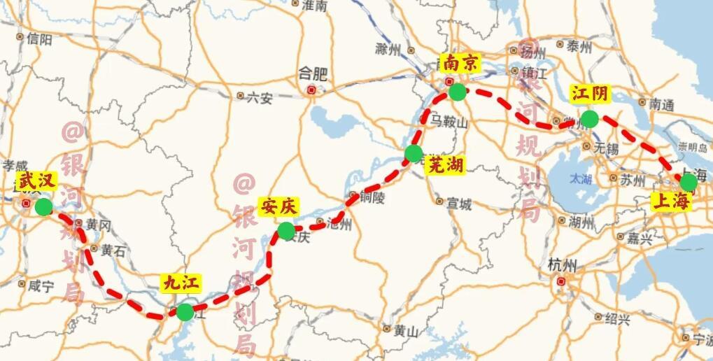 在江苏是利用南沿江城际铁路(沪宁沿江高铁),然后经芜湖、安庆、九江等城市,最后到达武汉,这可谓是妥妥的沿江高铁,网友表示:这才是纯正的沿江高铁。