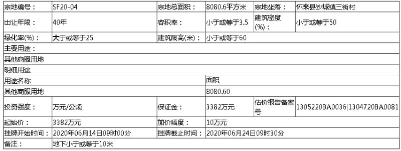 以上三宗地均为其他商服用地,面积合计29882.33㎡,保证金合计10518万元(约合1.05亿元),待这三宗地成功出让后,怀来的商业配套必定会更加完善。