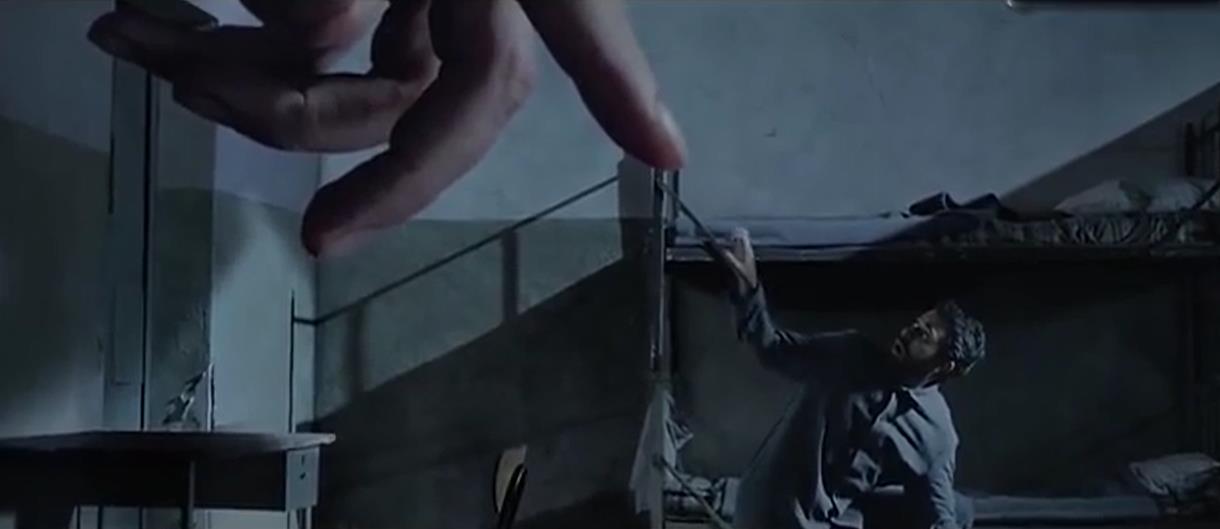 影片开头是一名留着络腮胡子的男子不知何种罪行正被押进牢房