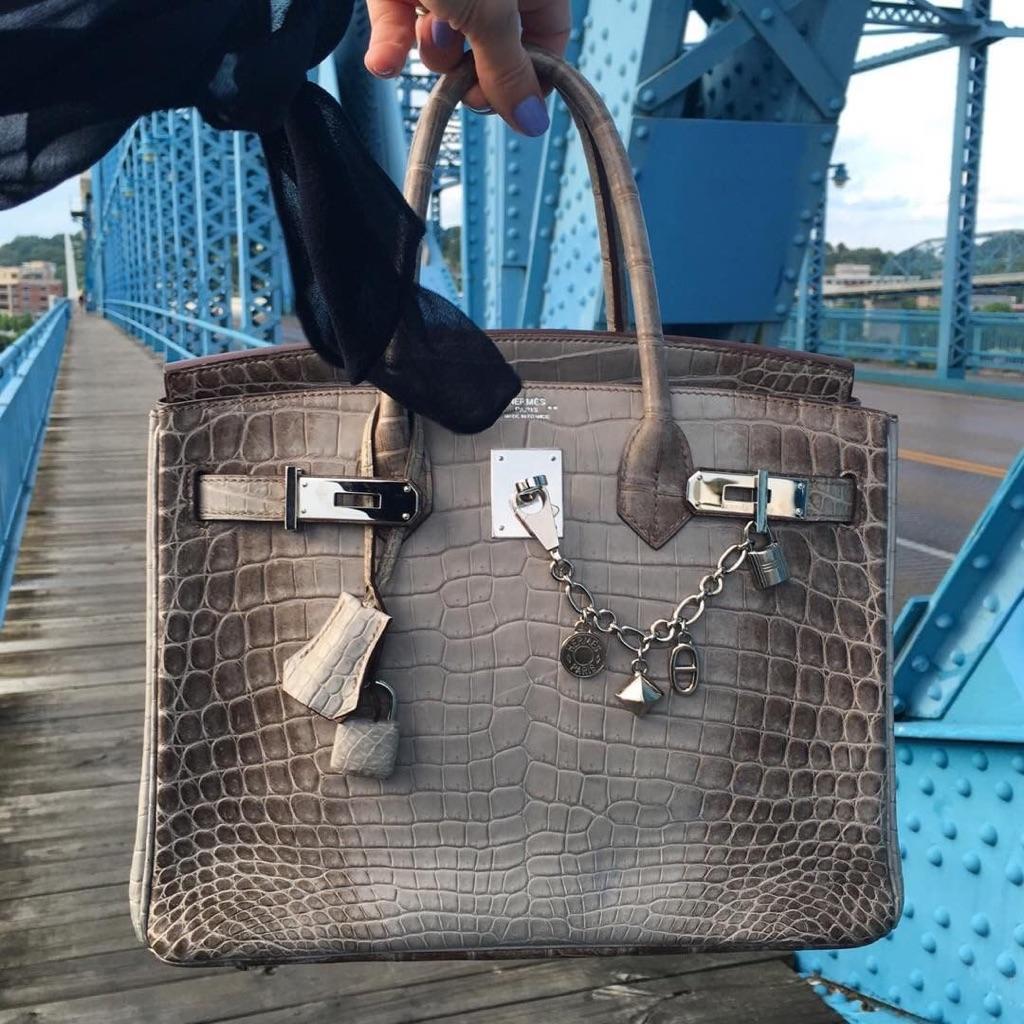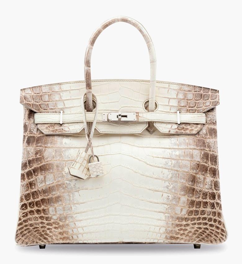 在2017年5月,一款独特的,无光泽的喜马拉雅尼罗罗非鱼鳄鱼钻石Birkin 30与18k白金和钻石五金售价为308,152美元,加运保费总共 38万美元。该包仍然是售出最贵的手提包。
