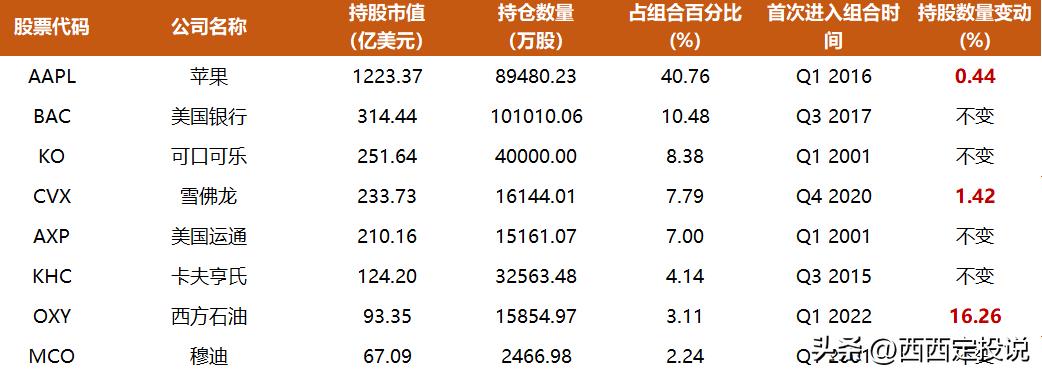 不仅仅只有比亚迪一家公司,目前巴菲特重仓的苹果,单只持仓达到40.76%,也是大家都知道的。