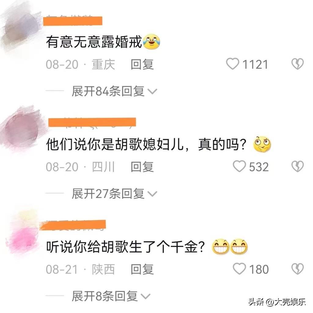 最近王晓晨终于回应了,王晓晨在短视频平台上分享了一段视频,很多网友在评论区留言,问她是不是和胡歌生了个女儿。