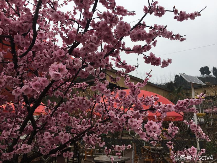由于今年气候的原因,桃花开的比往年晚了一些,虽然,这里的桃花还是含苞待放,但枝头上一个挨着一个的花骨朵还是看的很喜人。记者沿山路一路来到了桃花故里景区内部,虽然这里的桃花没有完全开放,但已经吸引了不少的游客,大家也都是慕名而来。这桃花虽然没有完全开放,有些小小的遗憾,但丝毫没有影响大家游玩的心情,你瞧,这位大姐站在桃树前与含苞待放的花骨朵一起拍照留念也是美美的。相信再过几天,这万亩桃花竞相开放,游客们身临桃花故里,定是美轮美奂。说完了玩的,这吃的对于咱们成都人来说更是少不了,在桃花故里景区附近就有不少的农家乐可以供您选择。