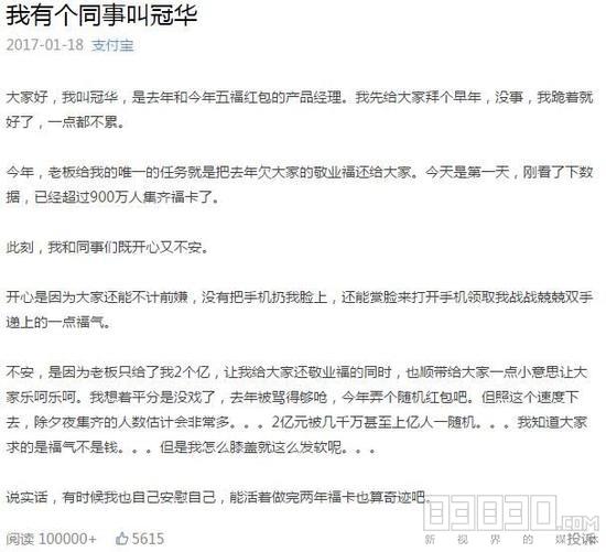 其实也别太过认真,至少马云爸爸AR红包社交的目的是达到了。而且目前,已经有2700万人集齐了五福,到了除夕当天估计得有一亿人瓜分这2亿的红包吧。这里小编忍不住就要给大家曝一个大料: