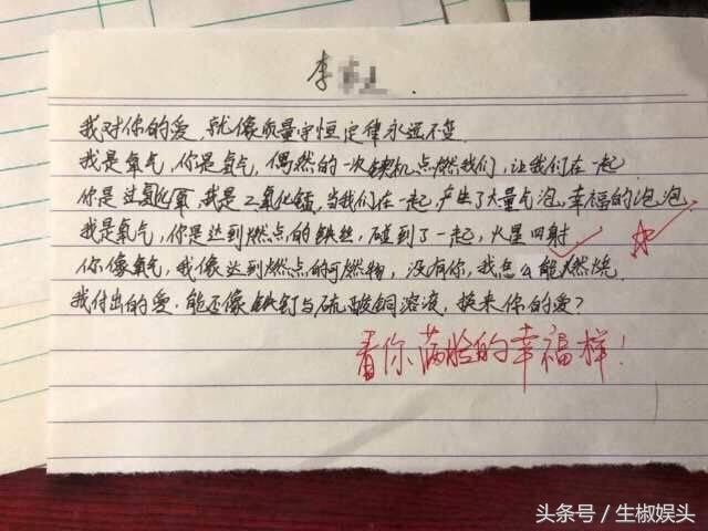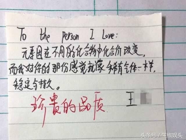 牛!中学生用化学术语写情书 网友:没文化的人都不懂在表白!
