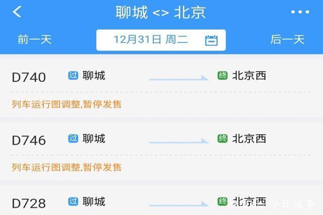 山东聊城至北京的动车将于12月31日启程,时速160公里,票价翻倍