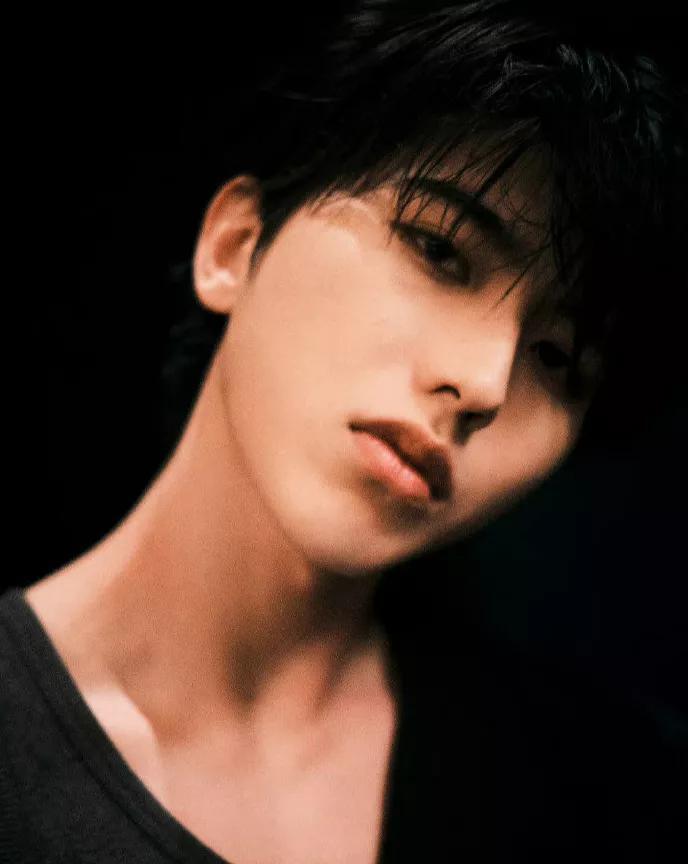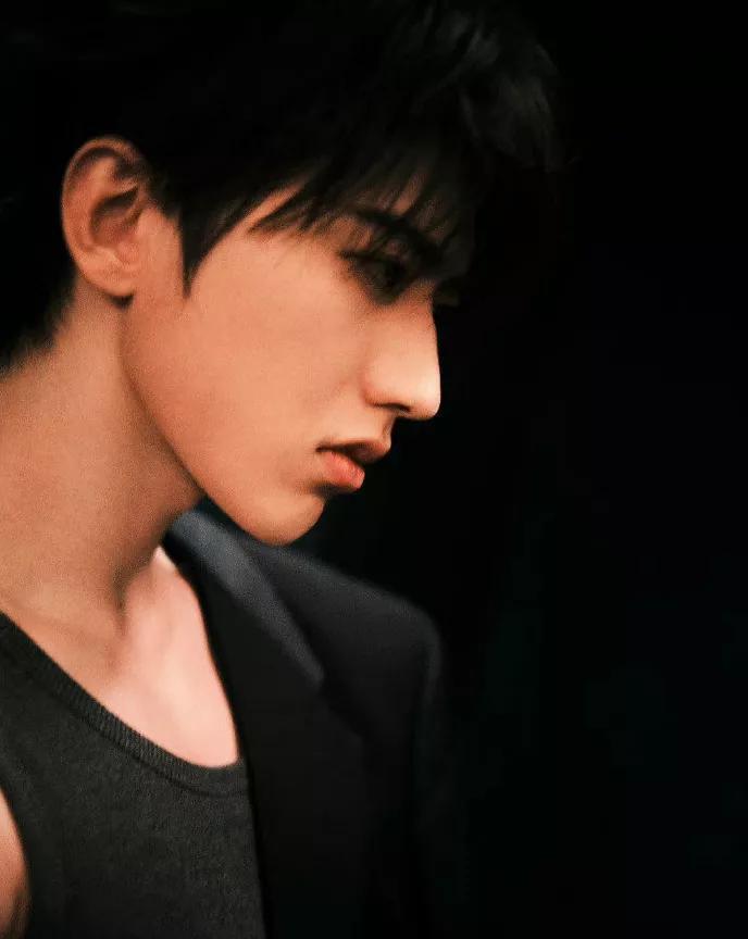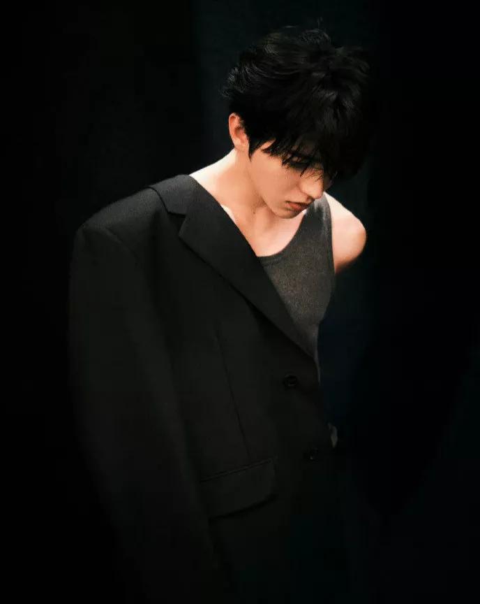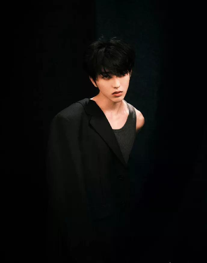 这组照片中,蔡徐坤画着略显浓重的妆,特别是黑色的眼影和垂落的刘海儿,颇有一种禁欲之风。