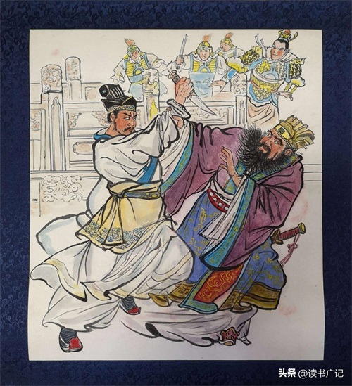 董卓进入宫门后,李肃立即用戟刺向他,但董卓身着铠甲,没有被刺穿,只是伤了胳膊,掉下车子,李黑等人用长戟戳向董卓的车子,有人则戳向他的马匹。董卓回头大声喊道:“吕布何在?”