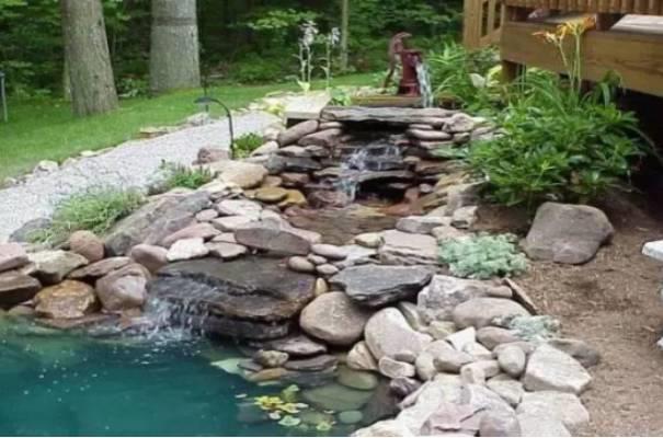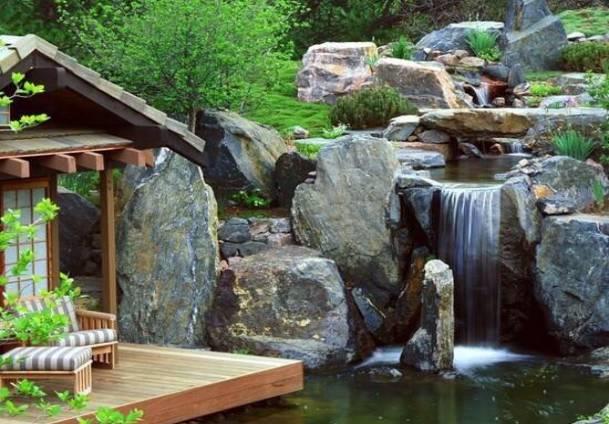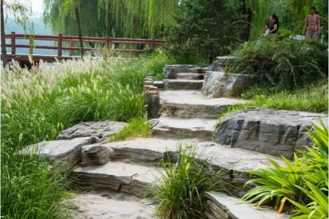 在现代园林的发展和手法整合中,设计及施工团队巧妙地将新型材料、自然植物以及现场所具备的水源条件和自然地势巧妙的结合起来,形成了生态的自然式叠水,是现代园林造景中得到较高认同的石景景观。以石材造景谓之叠石;以水造景,谓之理水。由于水是流动的,不定形的,与山的稳重,固定恰如其分成鲜明对比,水中的天光云彩和周围景物的倒影、水生植物等,使园景生动活泼,所以有“山得水而活,水得山而媚”之说。