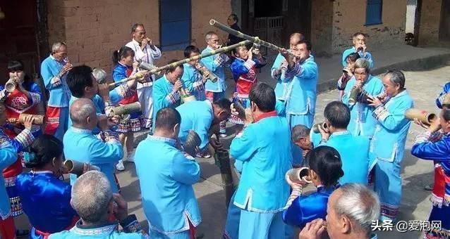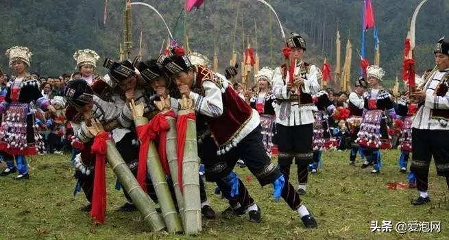 △芦笙踩堂舞。这里节日很多每逢佳节,男女青年都会聚集在一起以踢毡子来寻觅自己的意中人。