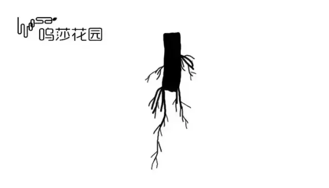 如果你准备把很多肉肉组盆种植在一起,把根系修成上图这样是合适的,你可以在盆土里钻个洞,然后把根系放下去就可以了。这很利于密植。