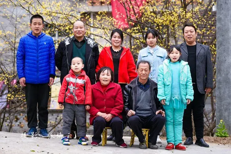 这次去三教殿村,先遇见微信网名叫“寒冰”的一家人,寒冰两个孩子,夫妻两人和大哥全家都在新疆克拉玛依工作,都两个孩子,三个大孩子都在老家上学,他们带着小儿子在新疆,她哥和嫂子两年前离婚,由于受疫情影响,没有回新疆,刚好遇见我,顺便给他们拍了唯一的一张全家福。随着年轻人都外出打工,老家慢慢只剩下有故事的大树和摇摇欲坠的老房子。